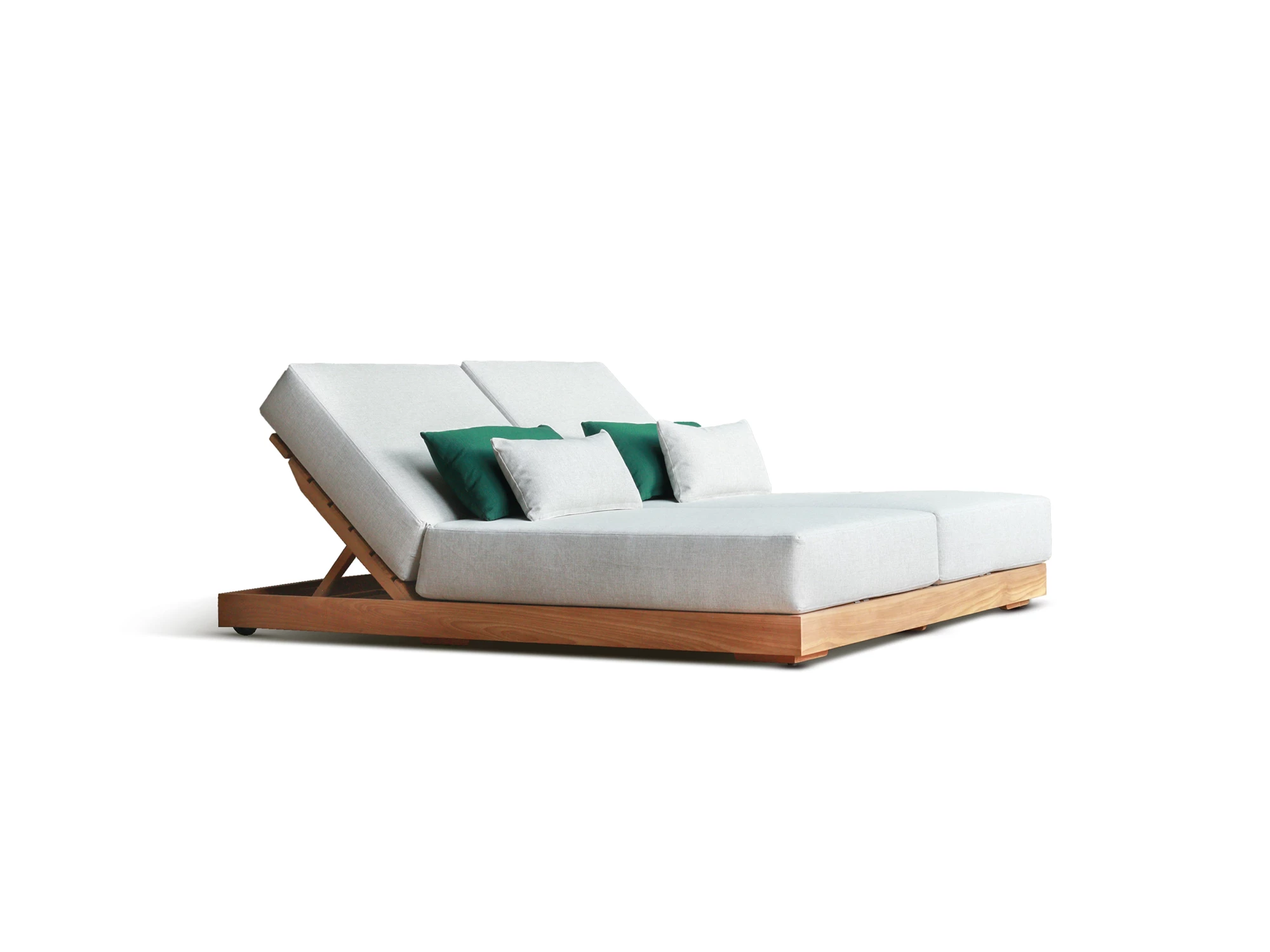 Bain de soleil double Kos – teck & tissu Sunproof écru