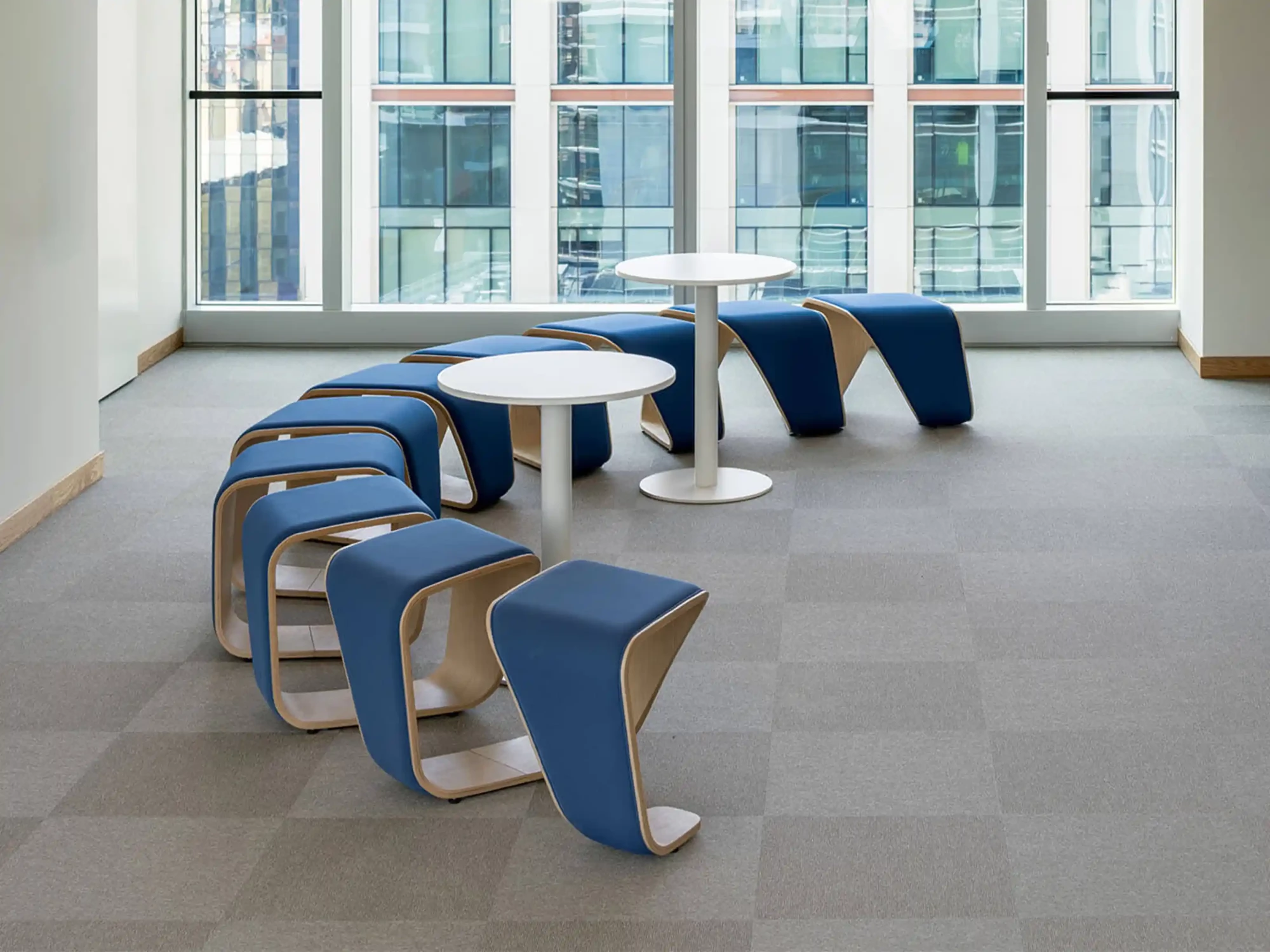 D'une longueur généreuse, il offre 9 places assises. Contrairement à la version bois brut, le DNA 09 RR joue la carte du confort absolu avec une assise et une façade rembourrées et tapissées. La structure en hêtre multiplis (finition chêne ou wengé) est ici habillée de cuir ou de tissu, apportant une touche de chaleur et de couleur qui contraste avec les connecteurs en acier.