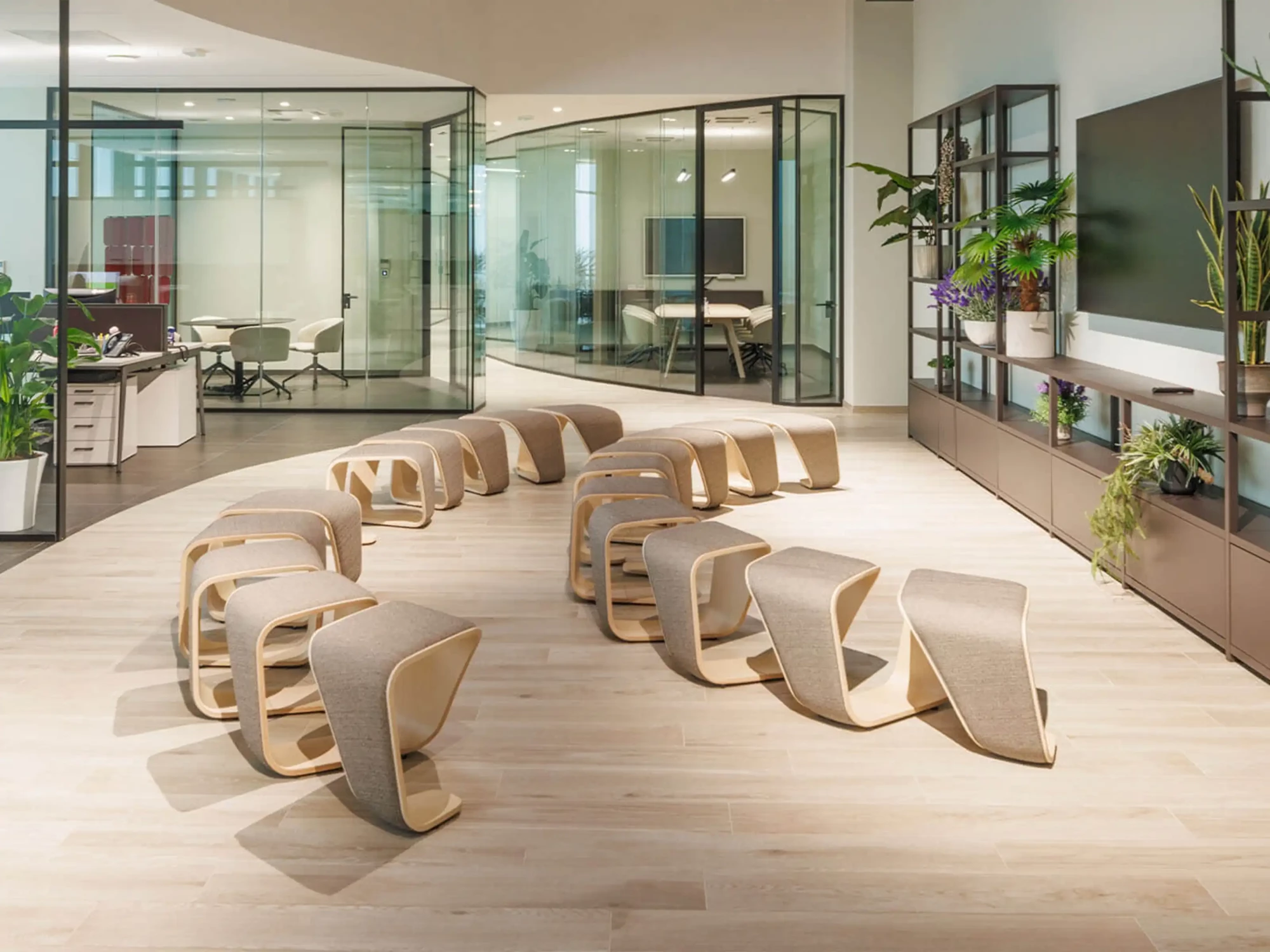 La force de la collection DNA réside dans sa modularité infinie. Au-delà de ce modèle courbe, vous avez la liberté de composer votre propre "chaîne ADN" en mixant différents modules (linéaires, courbes, bois brut ou tapissés). N'hésitez pas à nous contacter : nous étudierons ensemble votre architecture pour créer une configuration unique qui épouse parfaitement vos volumes.