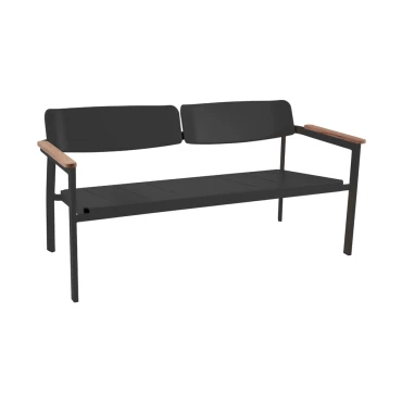 Le banc Shine est entièrement réalisé en aluminium, matériau qui associe une grande légèreté et une forte résistance, il ne craint donc pas le soleil, les intempéries et les climats marins. Sa structure est en aluminium et possède des accoudoirs en teck certifiés FSC.