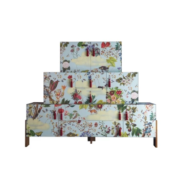 Le cabinet Ziqqurat 2 de chez Driade en bi-stratifié, est une pièce incontournable grâce à ses motifs romantiques et à ses trois hauteurs. Composé d'un grand conteneur, d'un petit et extra petit meuble, ce cabinet floral est conçu pour un espace de vie et un style contemporain. L'utilisation se fait uniquement en intérieur.