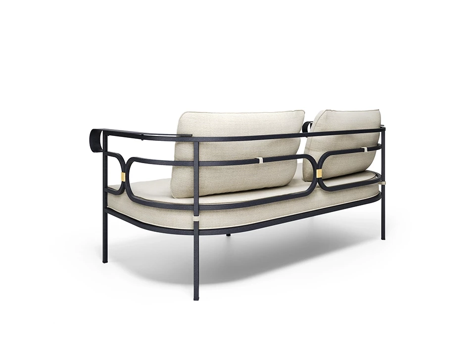 Ce canapé 2 places (collection Collier) poursuit le dialogue entre classicisme et design contemporain initié par le studio LCM Marin Design. Il se distingue par une élégance intemporelle et des formes harmonieuses, idéales pour composer un salon de jardin raffiné et prestigieux.