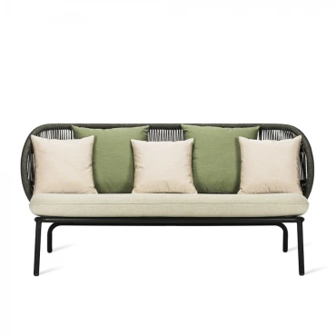 Appréciez le confort optimal de ce canapé de la magnifique collection kodo signé Vincent Sheppard. Ce splendide canapé composé d’un dossier arrondi en cordage acrylique et d’une structure d’aluminium saura faire la différence esthétique sur votre terrasse ou dans votre jardin. La différence se retrouve également dans l’expérience d’assise d’un confort supérieur. Notamment grâce à la qualité premium de nos coussins. Ceux-ci forment une alliance parfaite entre le coussin d’assise couleur écrue et les coussins décoratifs couleur olive green et blush.