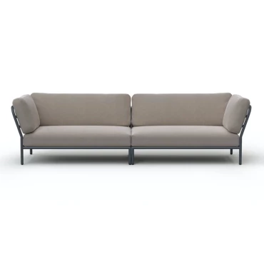 Le canapé Level se compose d’une structure en aluminium termo-laqué. Les coussins moelleux sont revêtus d’un tissu Sunbrella Heritage. Ce tissu certifié Oeko-tex est fabriqué à partir de fibres recyclées.