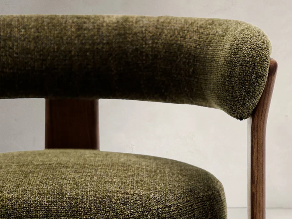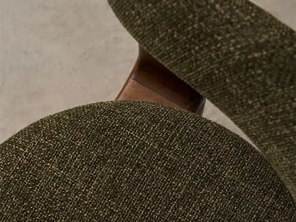 Matière Assise/Dossier : tissu chenille en polyester recyclé (finition vert)