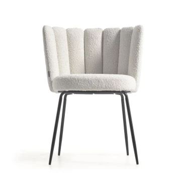 Avec son tissu bouclette et ses pieds en acier noir, la chaise Aniela deviendra une pièce maitresse de votre décoration intérieure.