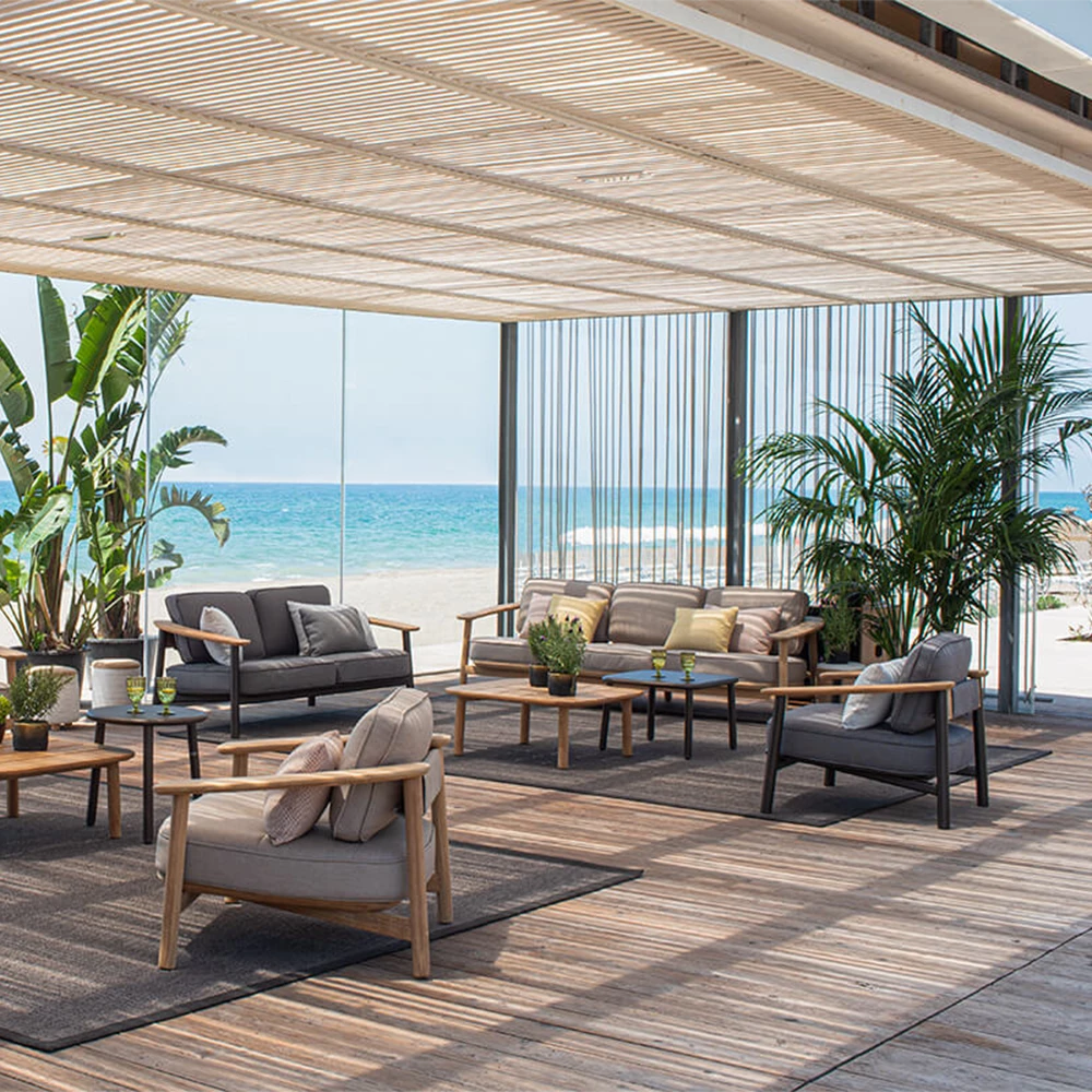 La collection Twins imaginé par le designer Sebastian Herkner comprend deux versions pour ces fauteuils et ses canapés : une entièrement en teck, et l’autre alliant le bois et l’aluminium. Découvrez la versions 100% bois naturel du fauteuil de jardin Twins. Ce modèle est vendu avec son coussin.