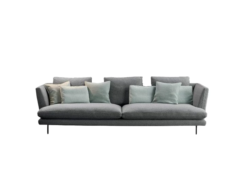 La légereté est la caractéristique principale du canapé Lars. Les accoudoirs sont légèrement inclinés vers l'extérieur, les pieds sont constitués d"une fine ligne de métal qui donne au canapé une image aérienne.