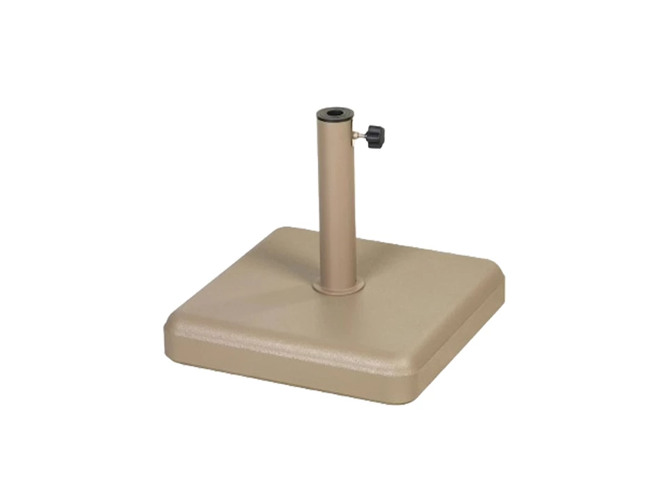 La toile couleur sable (Sand), avec ses nuances dorées, trouve un écho parfait dans la finition Noisette du socle en béton. Ce duo de tons chauds renforce l'aspect solaire et méditerranéen de l'ensemble. Le pied de 60 kg garantit un maintien optimal du parasol, même en cas de brise, tout en restant discret grâce à son design plat et épuré.