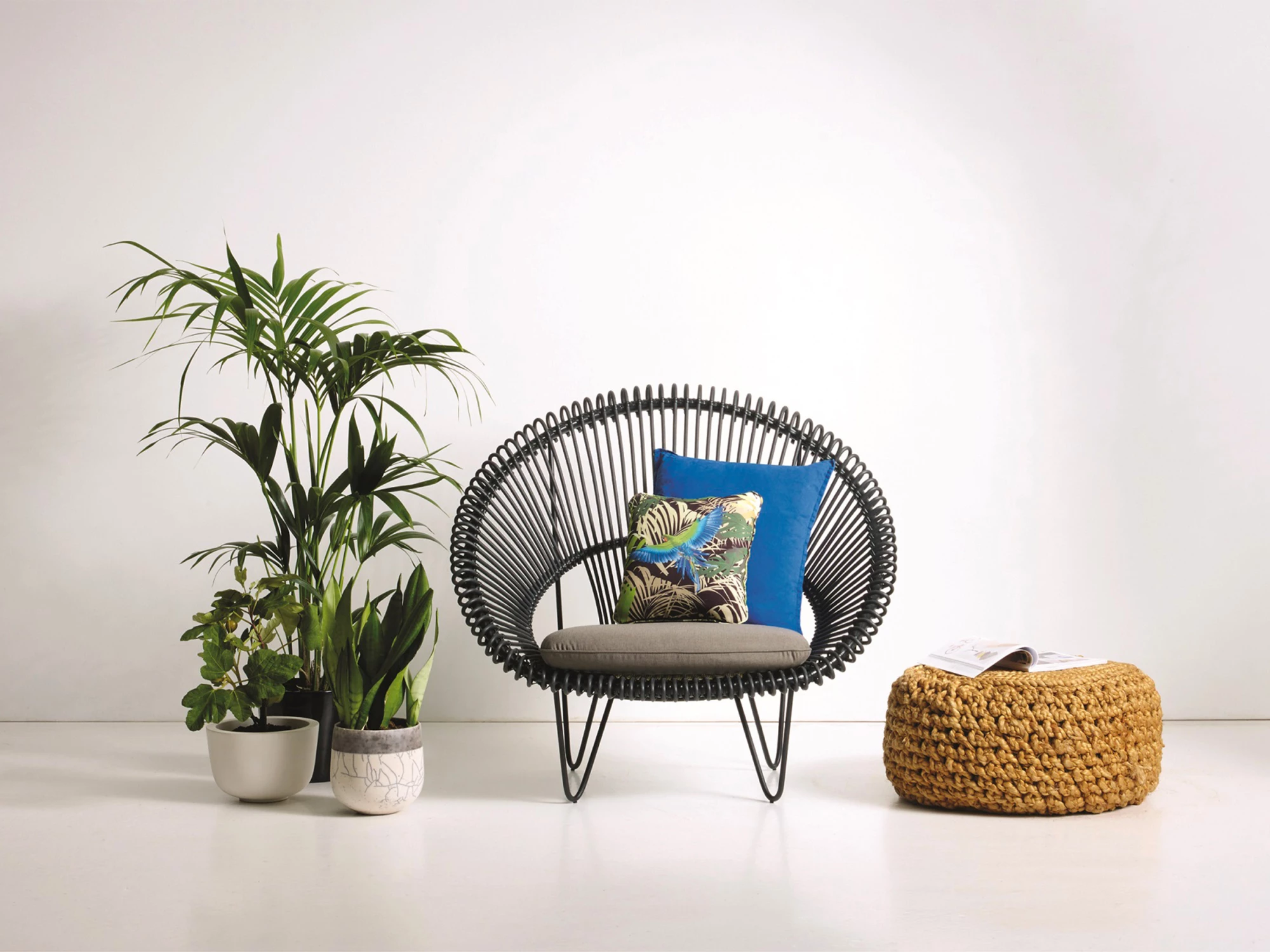 Sa structure en osier et ses pieds thermolaqué s'intègrent parfaitement dans tous les types de décoration.