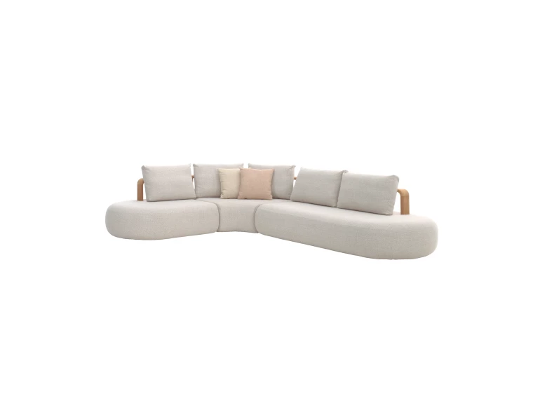 Découvrez le salon de jardin modulable Mila, une composition flexible qui s'adapte à votre espace grâce à ses différents éléments : un module 1 place, un module d'angle et un module 2 places. Ce modèle se caractérise par l'alliance raffinée d'un dossier en teck massif aux lignes verticales et d'un habillage textile haut de gamme, créant une ambiance à la fois naturelle et sophistiquée.