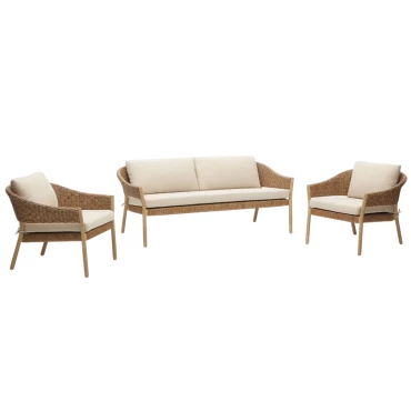 Le canapé 2 places et les fauteuils offrent un espace confortable pour deux personnes, tout en s'adaptant aux espaces extérieurs plus restreints.
