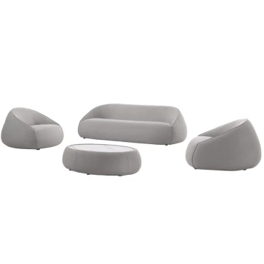 Poids : 14 kg (fauteuil), 45 kg (canapé), 26 kg (table basse)