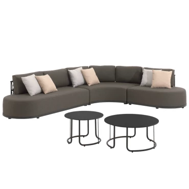 Le salon de jardin Lagos dispose d'une forme originale comprenant une banquette 2 places, une banquette d'angle 1 place, une banquette 1 place et deux tables basses. Cet ensemble complet de salon extérieur permettra de réunir jusqu'à 4 personnes pour des moments conviviaux sur votre terrasse ou dans votre jardin. Le canapé dispose de coussins d'assise et de dossier pour toujours plus de confort.