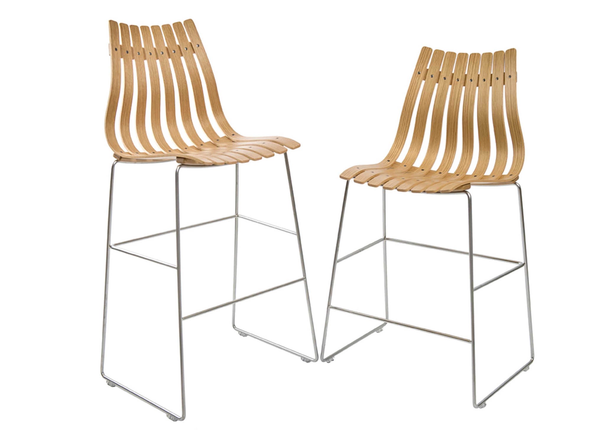 En dépit de références évidentes à l’ère du design du milieu du XXème siècle, cette chaise de bar, déclinaison de la chaise Scandia Junior, est comme une pièce intemporelle.