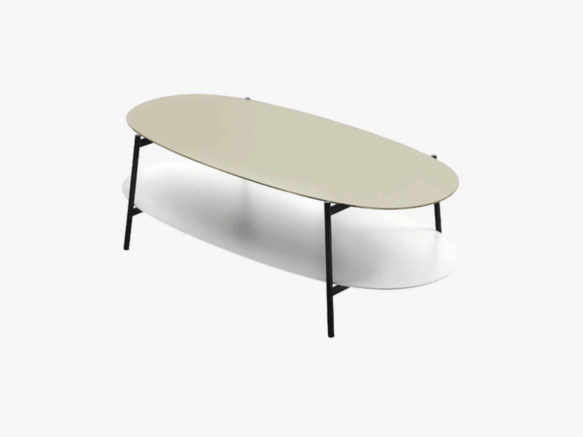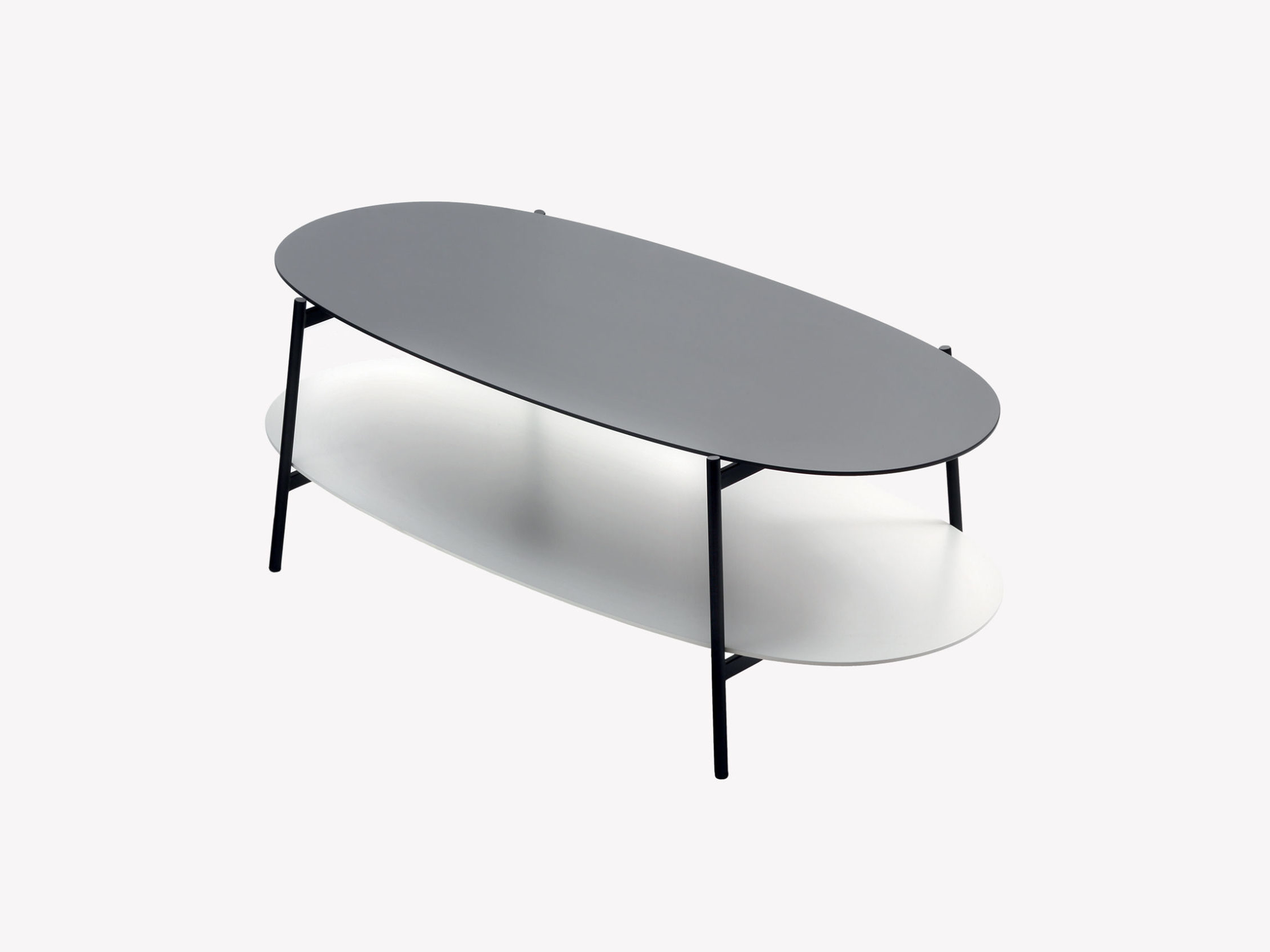Le piètement est en métal laqué noir. La table basse Shika s'intègre dans tous les intérieurs grâce à ses lignes douces et son faible encombrement.