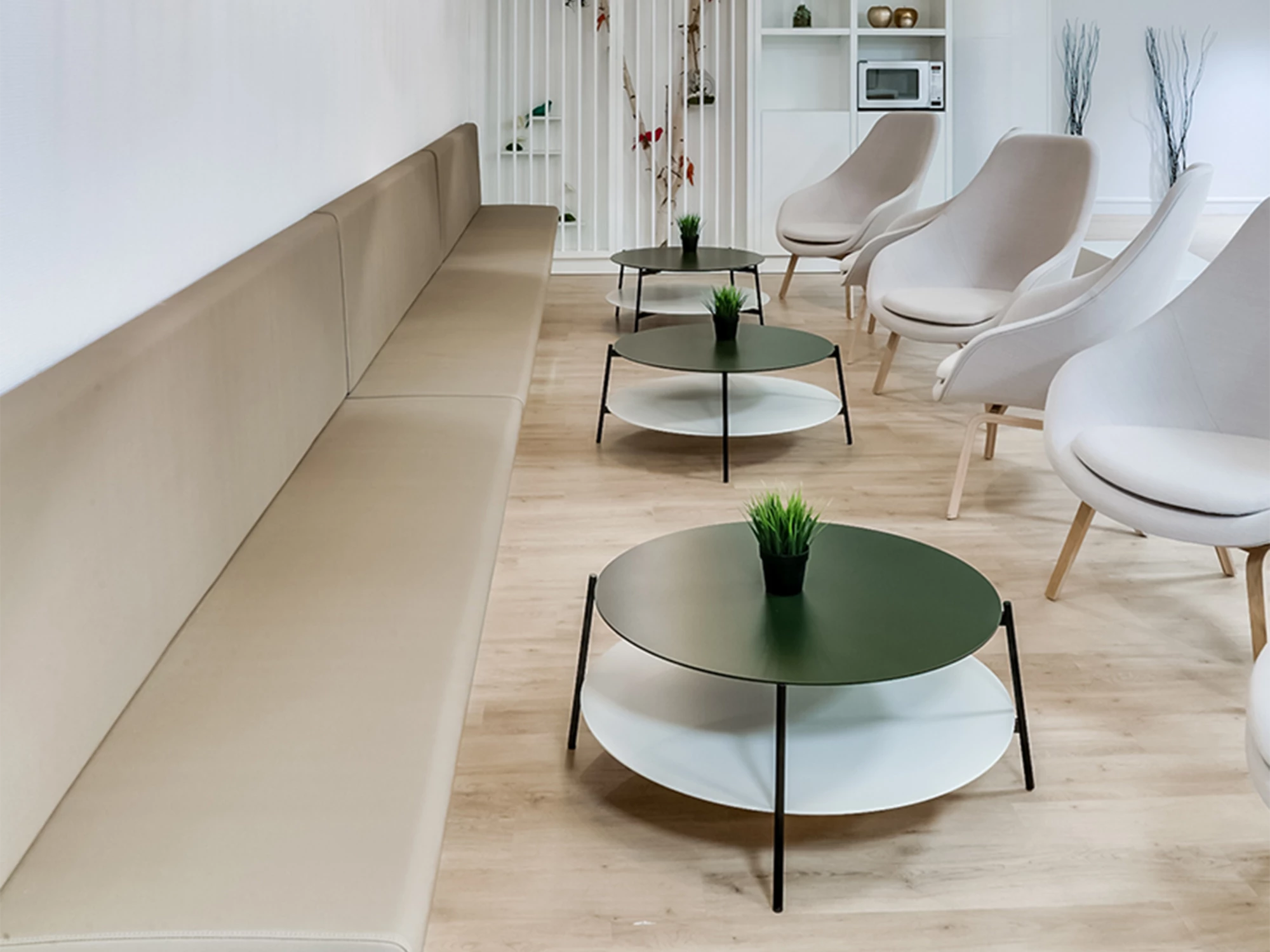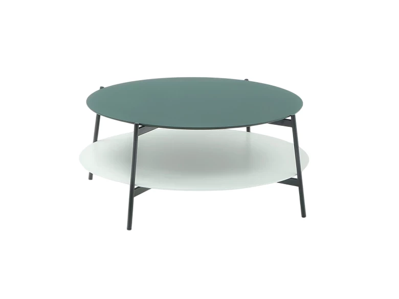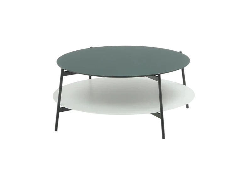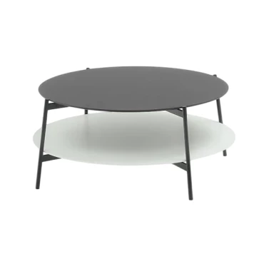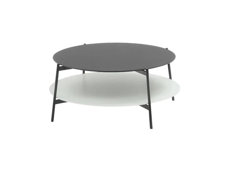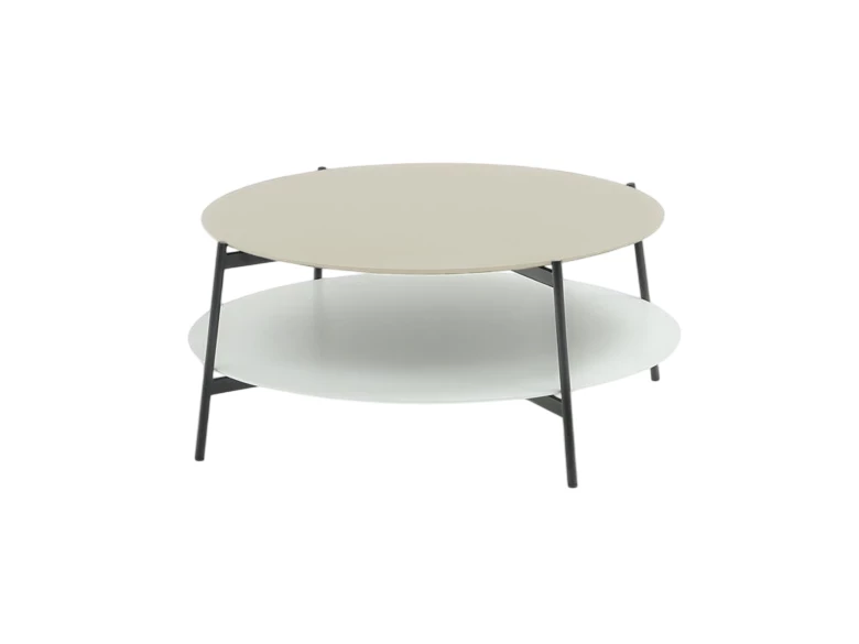 Le plateau inférieur, ayant un diamètre plus grand que le plateau supérieur, donne à cette table basse une silhouette harmonieuse et fonctionnelle.