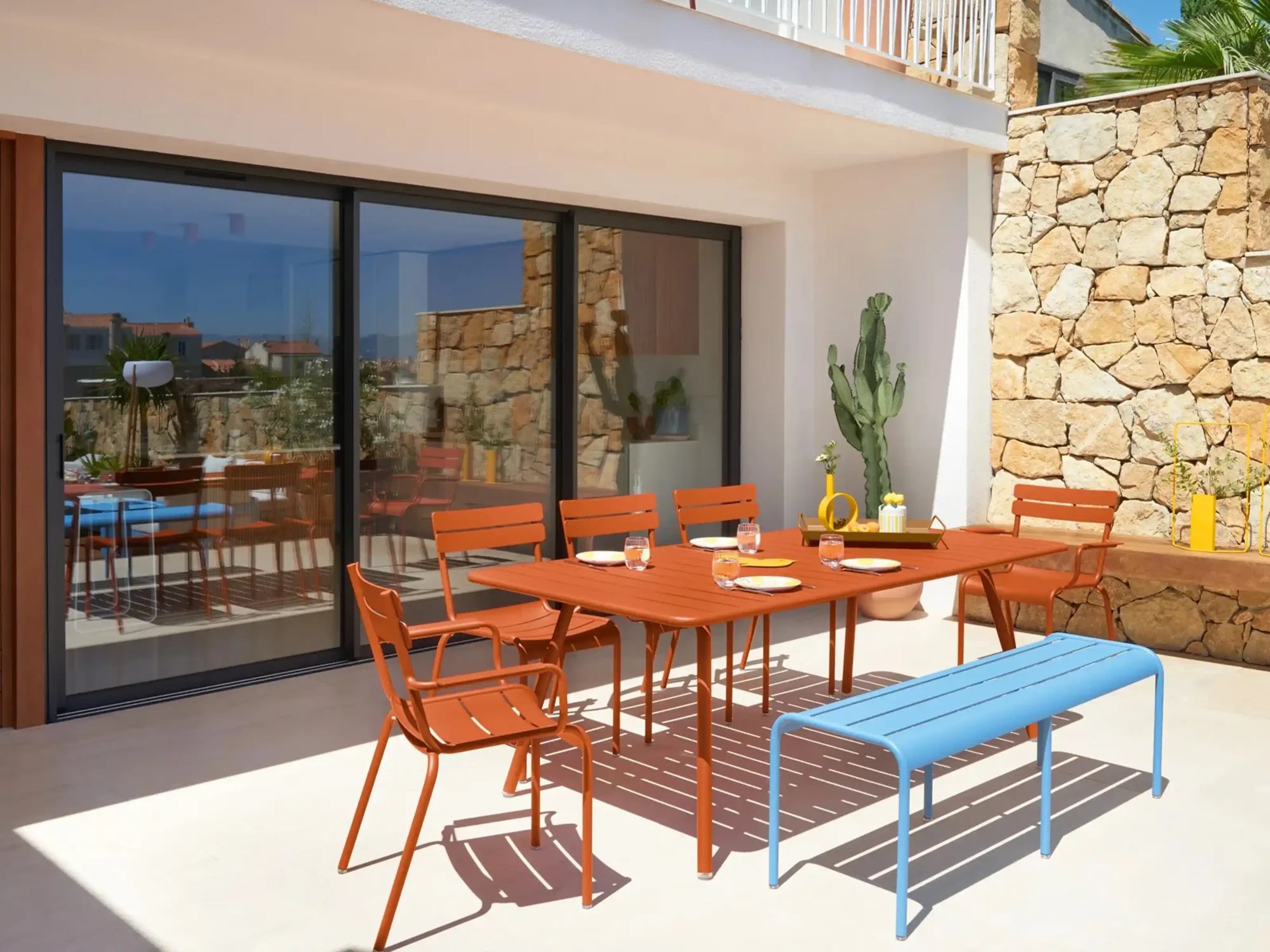 Une explosion de couleurs : Pour faire de votre coin repas un lieu unique, la Table Luxembourg se pare de toutes les nuances du nuancier Fermob. Disponible dans plus de 20 coloris, elle peut se coordonner parfaitement avec les chaises de la même collection (ton sur ton ou mix & match audacieux). Du sobre Réglisse au pétillant Orange Confite, tout est possible.