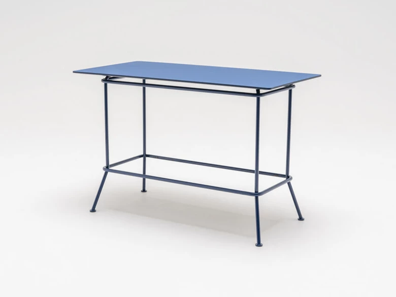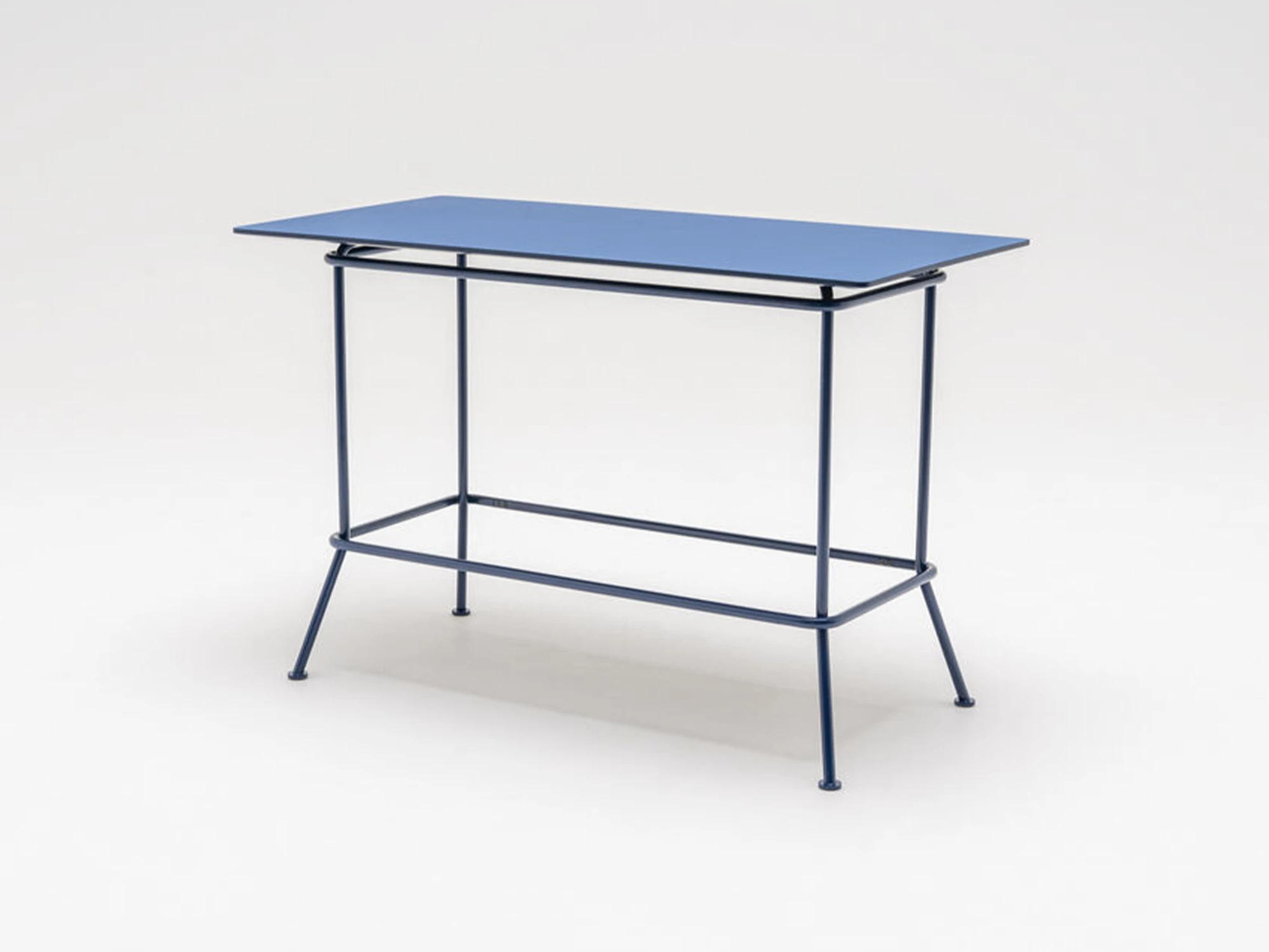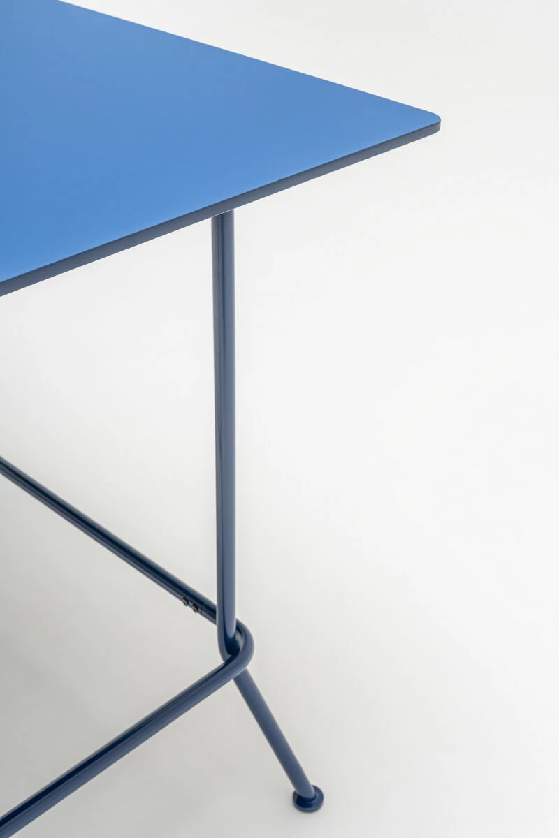 Découvrez notre table haute New School avec une finition bleue. Ses dimensions sont les suivantes : Largeur : 1600 mm, Profondeur : 800 mm, Hauteur : 1050 mm.