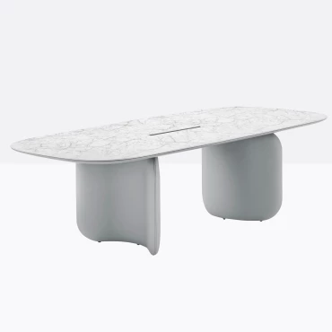 Cette table de réunion est disponible en 3 tailles différentes, en stratifié ou en fenix. Les deux pieds sont disposés symétriquement.