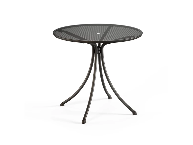 La finition fer ancien lui confère ici une profondeur particulière. Cette teinte emblématique d'Emu, à la fois sombre et subtilement texturée, accentue l'aspect "matière brute" du plateau en tôle d'acier. Elle transforme cette table au design industriel en une pièce intemporelle, capable de s'intégrer aussi bien dans un jardin classique que sur une terrasse ultra-contemporaine.