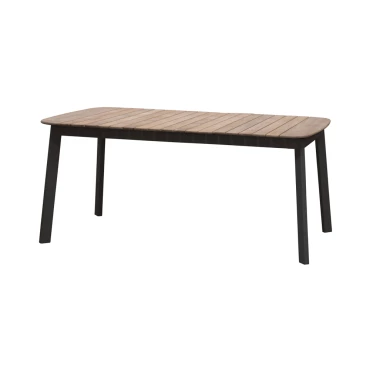 Le design de la table Shine est sobre et contemporain, ce qui en fait un choix polyvalent qui peut compléter n'importe quel style d'aménagement. Elle se distingue par son alliance distinctive d'aluminium verni noir et de teck, créant un contraste visuel élégant et captivant. Cette combinaison de matériaux de haute qualité rend la table Shine non seulement esthétiquement agréable, mais aussi extrêmement robuste.