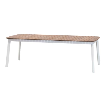 Cette table propose une alliance ultra chic de métal et de bois. Elle se compose d’un plateau en teck et de pieds en aluminium verni. Ultra robuste, son revêtement haut de gamme résistant aux intempéries la protège des intempéries, des UV et même du climat marin. Conviviale, cette grande table est idéale pour profiter de dîner entre amis, à l’extérieur comme à l'intérieur.