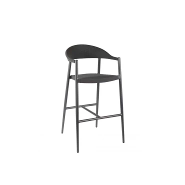 Son dossier enveloppant, sa coque revêtue de textilène et son rembourrage en mousse en font un tabouret extérieur très confortable.