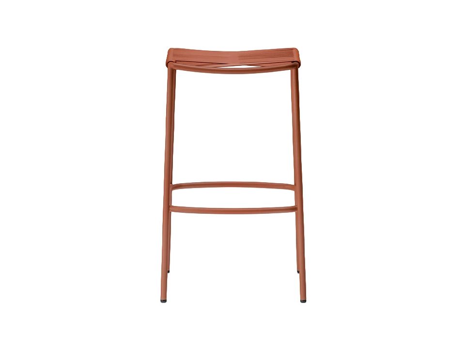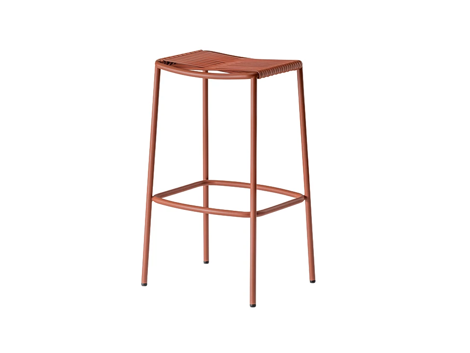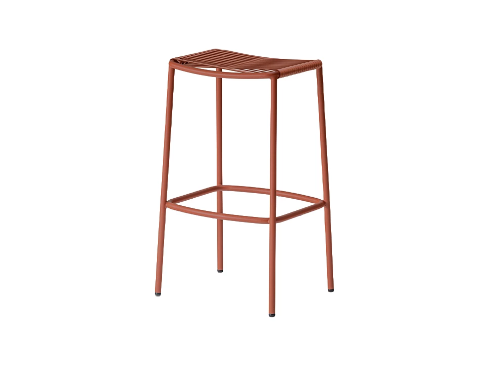 Ce tabouret (modèle 3908) se caractérise par des lignes géométriques et rationnelles, adoucies par des courbes pensées pour épouser parfaitement le corps. Dans cette version terracotta, il associe une structure résistante en tube d'acier de 20 mm de diamètre (finition TE200E) à une assise et un dossier délicatement tissés. Le cordage en pvc extrudé (finition TE2) renferme une âme en nylon qui garantit élasticité et solidité.